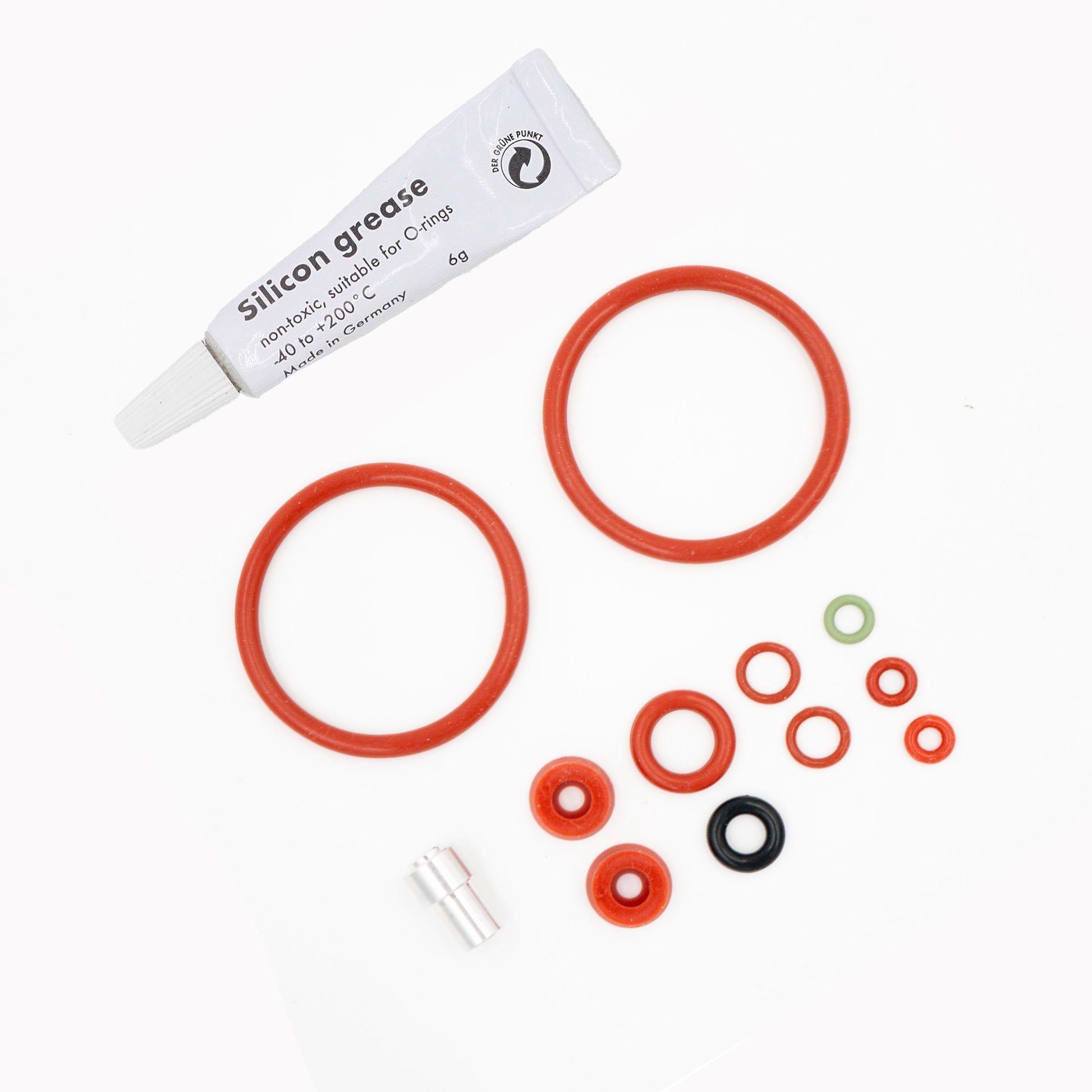 11 joints, 1 poussoir de soupape en aluminium et 1 tube de graisse silicone (6 grammes) adapté au contact alimentaire.